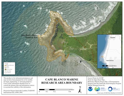 The designations completed a multiple year effort led by the Ocean Policy Advisory Council to revise the Management Strategy and was focused on site management designations along areas of Oregon’s iconic rocky shoreline. The effort included extensive input from agencies, organizations, governments, and general rocky coast users on revisions to the Plan.